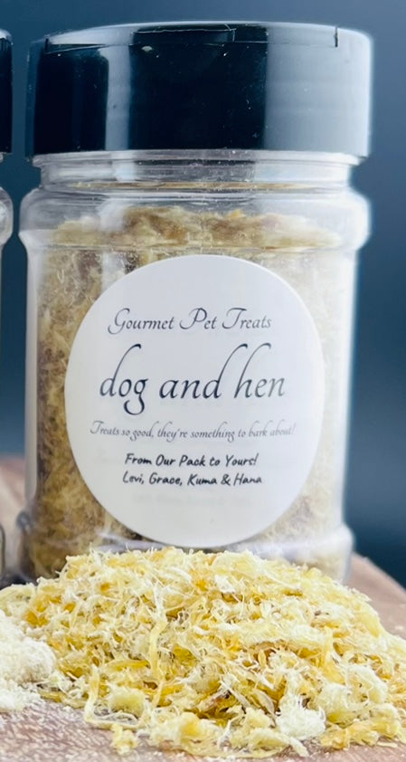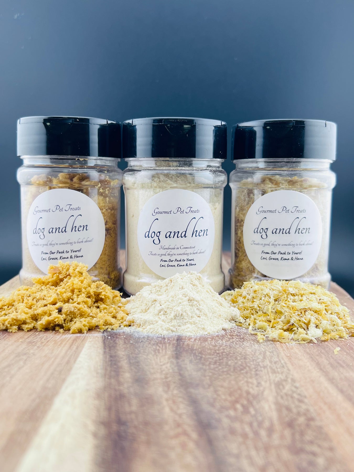 Reinvigorate your pup's dining experience with Dog and Hen's Meal Toppers – the perfect solution for picky eaters. Our single-ingredient toppers are crafted with utmost care, ensuring quality and taste in every sprinkle.
